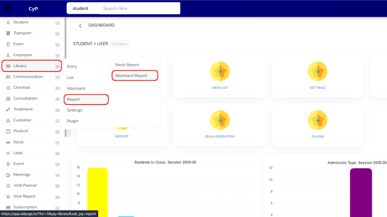 On the left sidebar, hover over Library. A submenu will appear. Hover over Report, then click on Allotment Report.