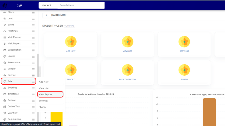 In the left sidebar menu, go to ‘Sale > View Report’.