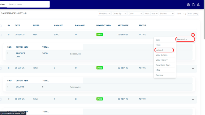 In the list, find the saleservice, and click on the filter arrow located next to it.