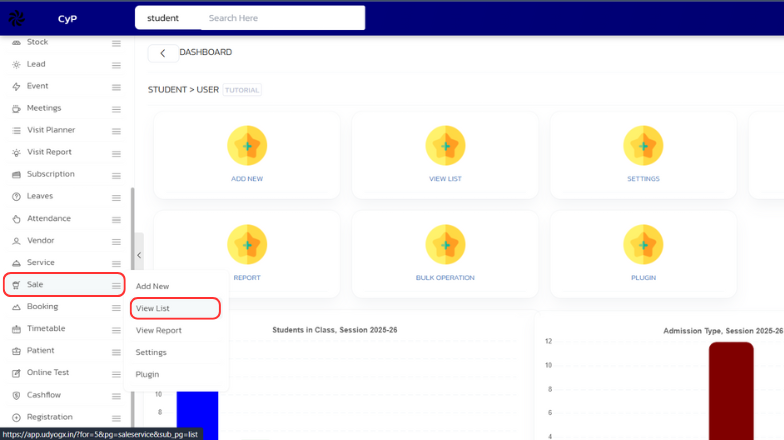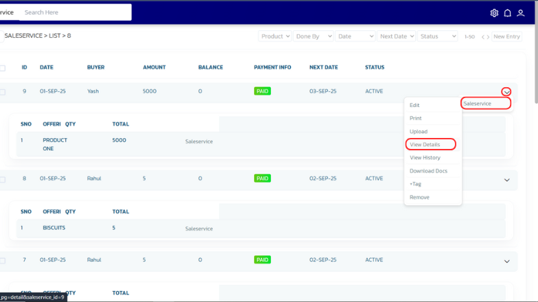 A dropdown menu would appear. Select 'Saleservice > View Details'