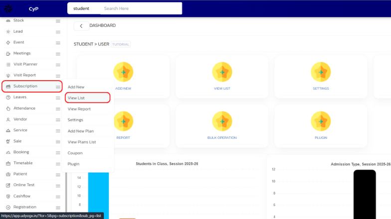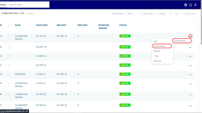 A dropdown menu would appear. Select 'Subscription > View Details'