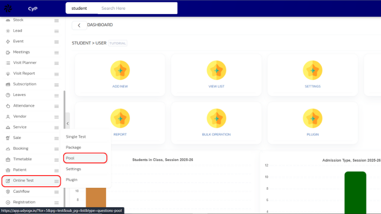 On the left sidebar, hover over Online Test. A submenu will appear. Click on Pool.