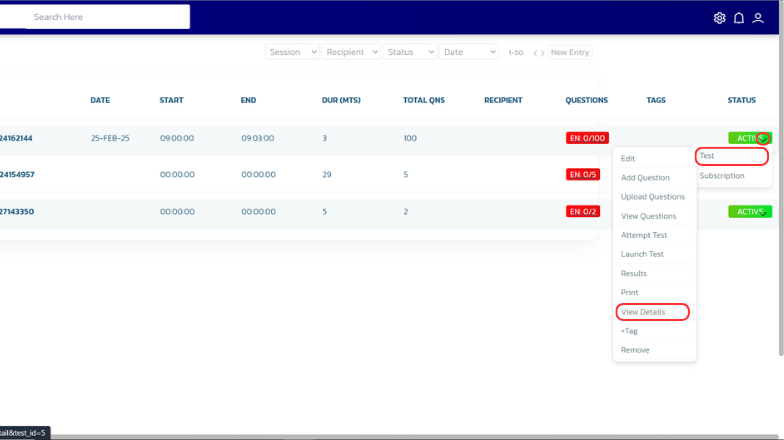 A dropdown menu would appear. Select 'Test > View Details'