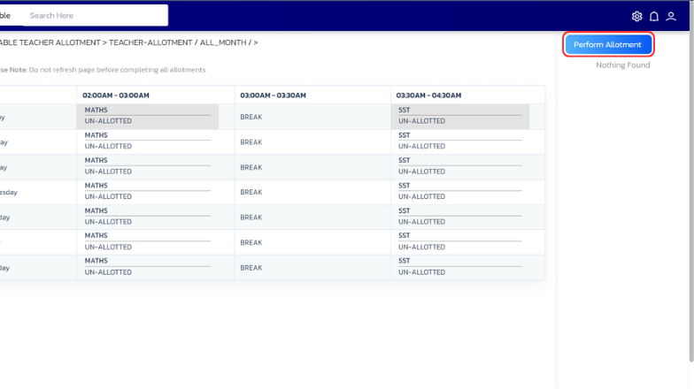 - Click on time and then select teacher and then Click "Perform Allotment".