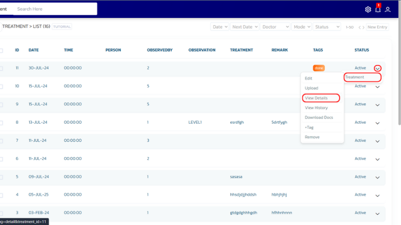 A dropdown menu would appear. Select 'Treatment > View Details'