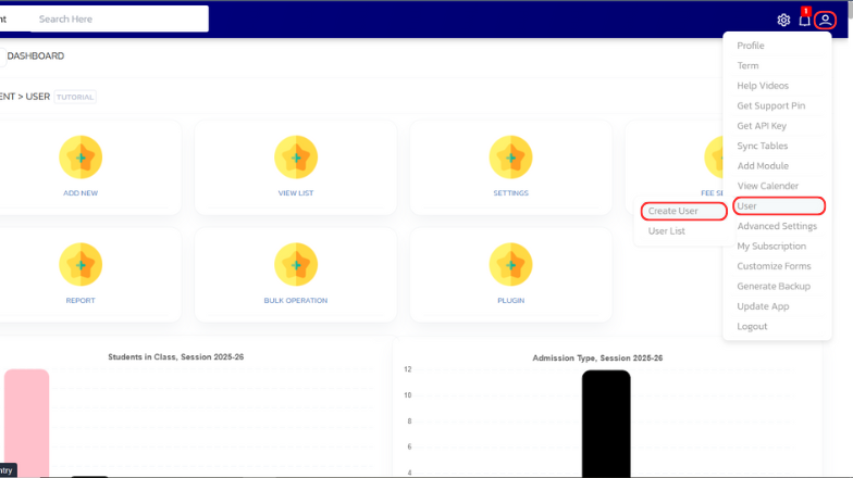 - In the form that appears, fill the necessary details like “Select User Type”, ”User Name”, ”Password”, “User Mobile”, “User Email”.