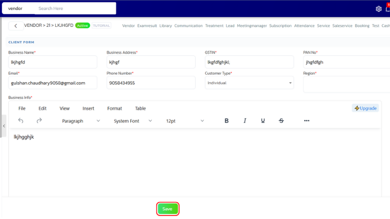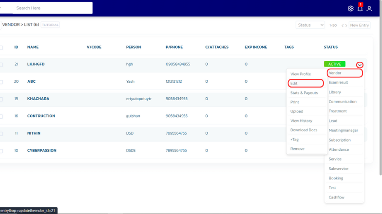 A dropdown menu would appear. Select 'Vendor > Edit'.