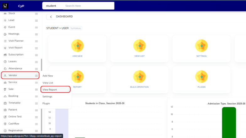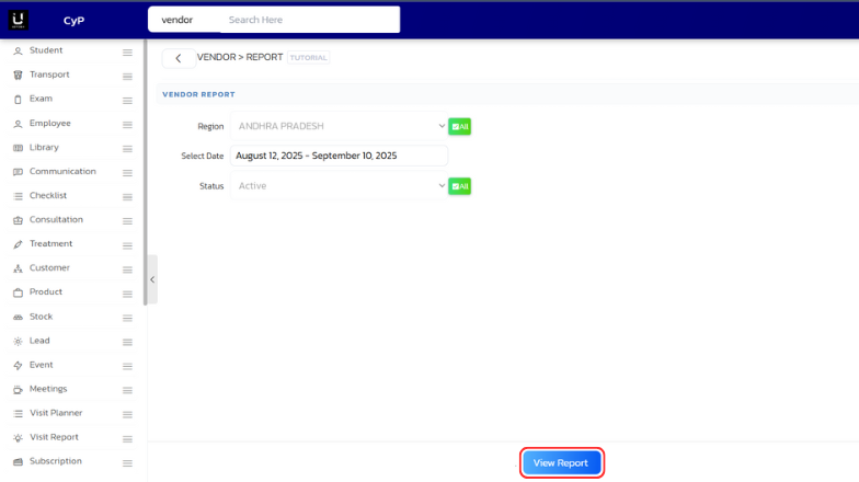 In the left sidebar menu, go to ‘Vendor > View Report’.