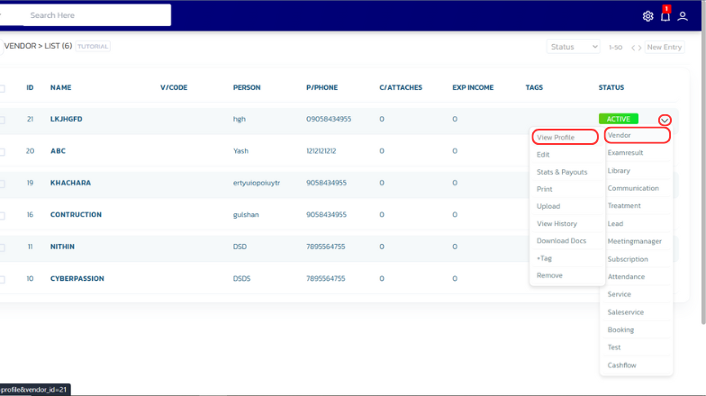 A dropdown menu would appear. Select 'Vendor > View Details'.
