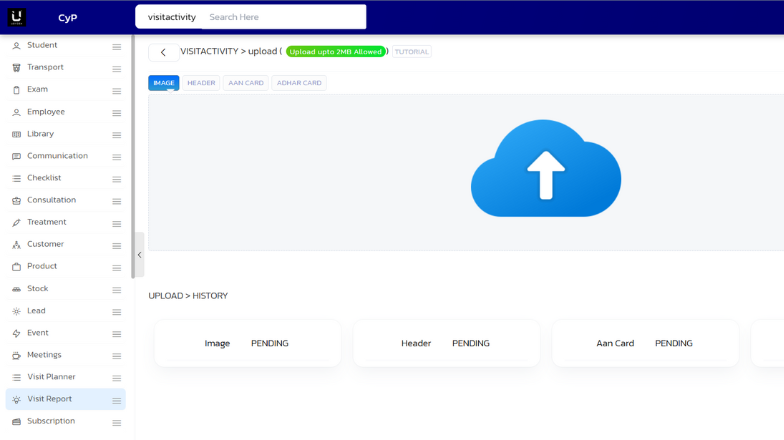 On the upload page, choose the document type from the top menu, then drag and drop your file into the designated area and click Upload.