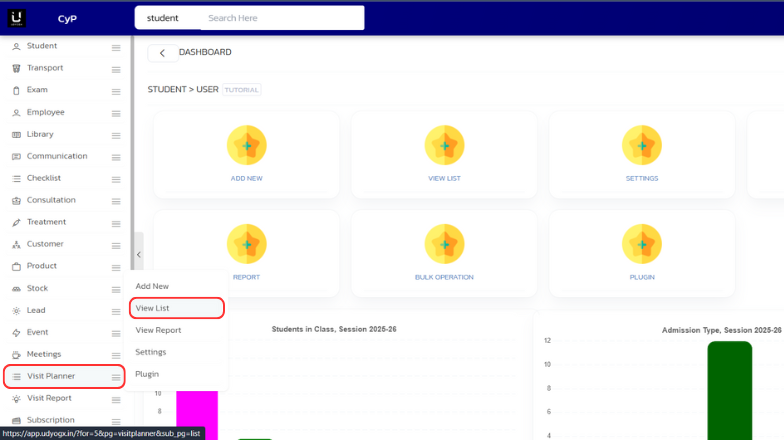 In the left sidebar menu, go to 'Visit Planner > View List'.