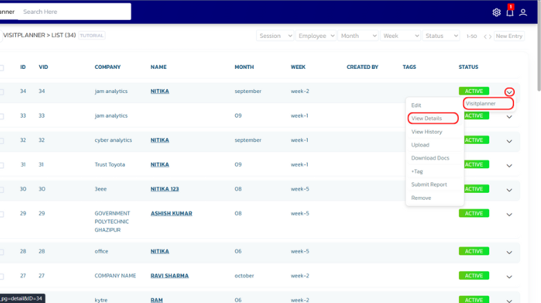 A dropdown menu would appear. Select 'Visitplanner > View Details'.